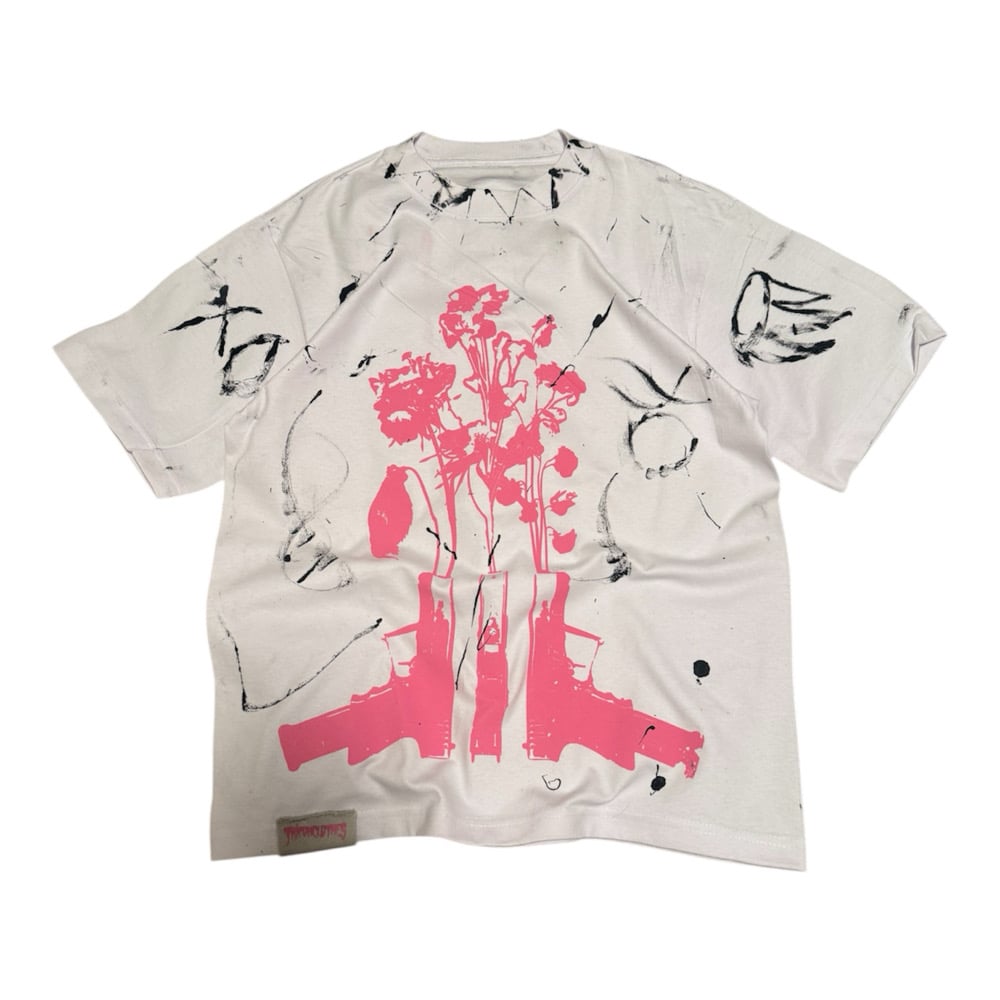 7.5 oz per yard cropped blank. Drop shoulder fitting. Screen print is water based and plastisol ink. Cured and quality tested.
